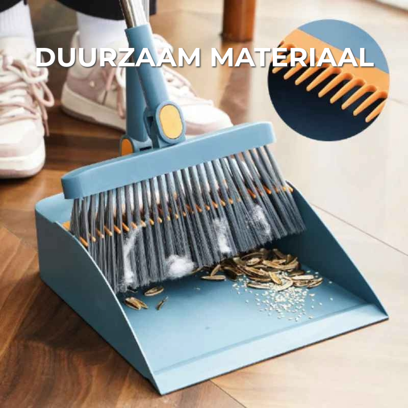 Dankzij de zelfreinigende tanden op de stofpan hoef je vuil en haren niet meer aan te raken – veeg de bezem erover, en hij is weer schoon in een handomdraai!