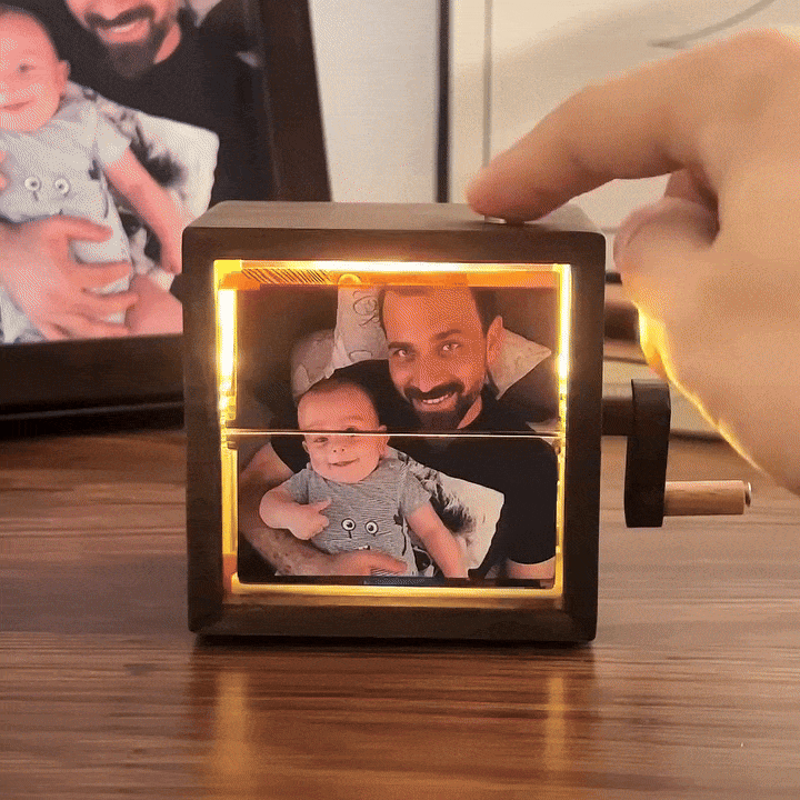 Draai aan de hendel en zie hoe je foto’s tot leven komen, terwijl de zachte verlichting een warme gloed geeft. Voel de opwinding van een interactieve ervaring die je samen met je familie kunt delen – een unieke manier om verbondenheid te vieren, elke keer weer!