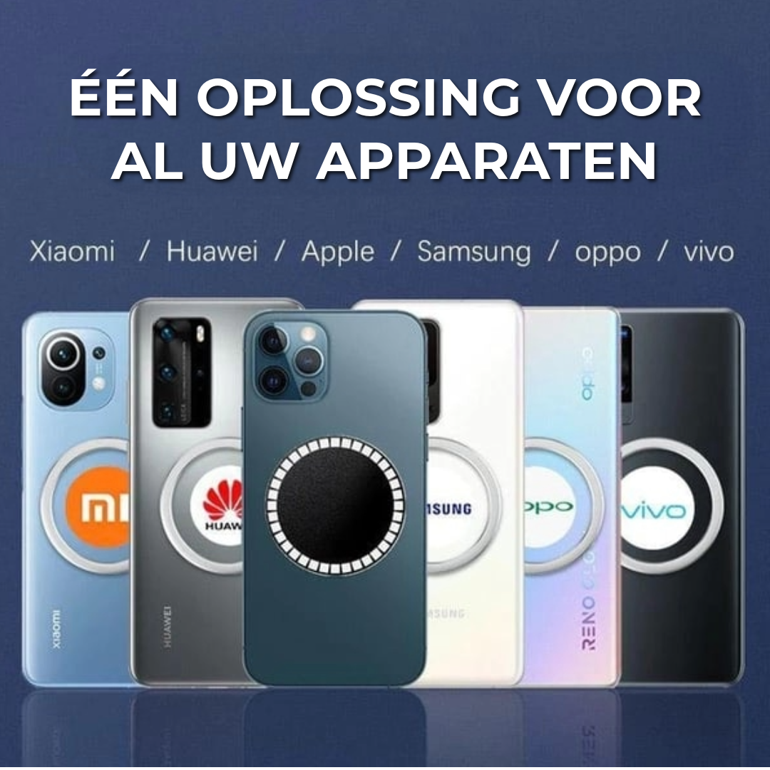 Nooit meer zonder batterij zitten! Met de Draadloze MagSafe Oplader laad je jouw smartphone snel en moeiteloos op, zonder gedoe met kabels.