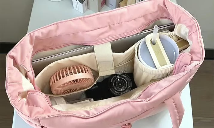 Altijd worstelen met een te kleine of onpraktische tas? Met de Elegante Schoudertas hoef je je daar nooit meer zorgen over te maken. Deze lichte en veelzijdige tas biedt ruimte voor al je dagelijkse essentials – van je 40 oz beker tot je laptop van 15,6 inch – zonder dat je stijl inlevert.