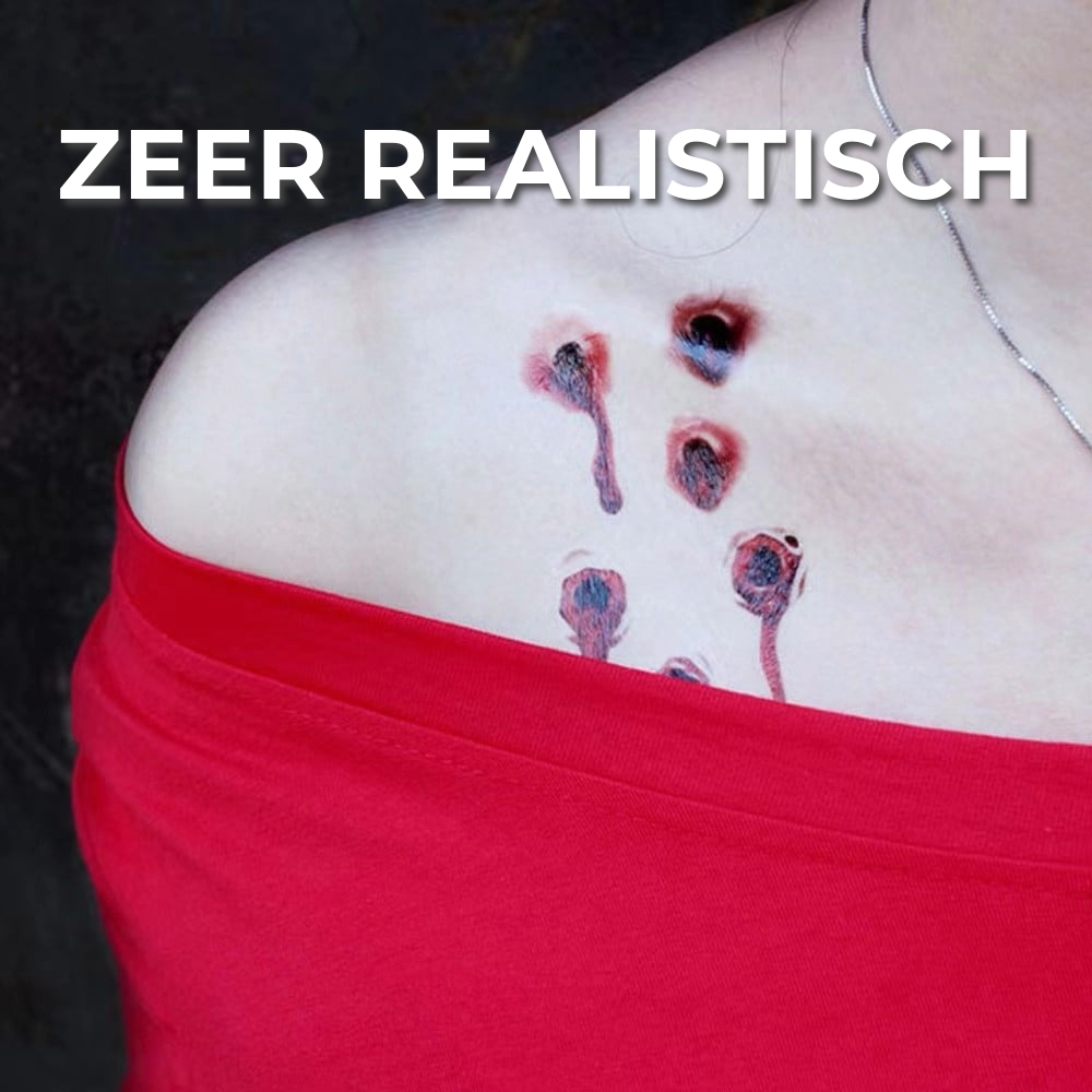 Transformeer je uiterlijk direct voor Halloween of elk kostuumfeest. Onze realistische tijdelijke tattoos creëren een opvallend effect dat elke outfit versterkt.