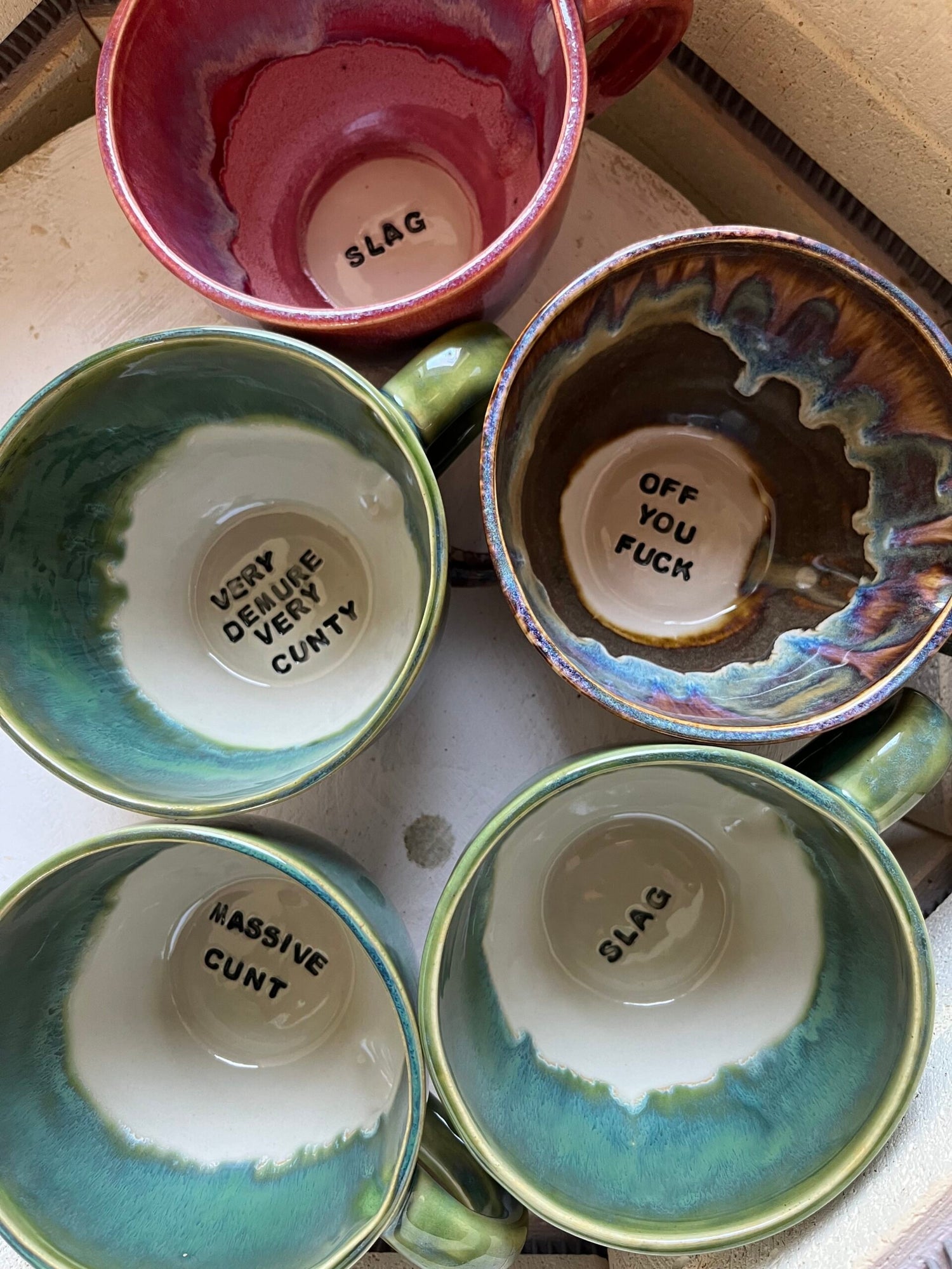 Elke mok is met de hand gemaakt en geglazuurd, waardoor geen enkele precies hetzelfde is. Het ruige, ambachtelijke design in combinatie met die brutale teksten maakt het een origineel cadeau dat niemand ziet aankomen.