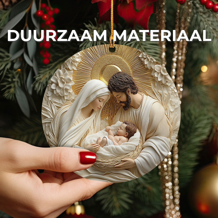 Vier geloof en schoonheid met dit heilige familie ornament. Gemaakt van hoogwaardig acryl, straalt dit ornament helderheid, diepte en elegantie uit. Het is een prachtige toevoeging aan je kerstversiering.