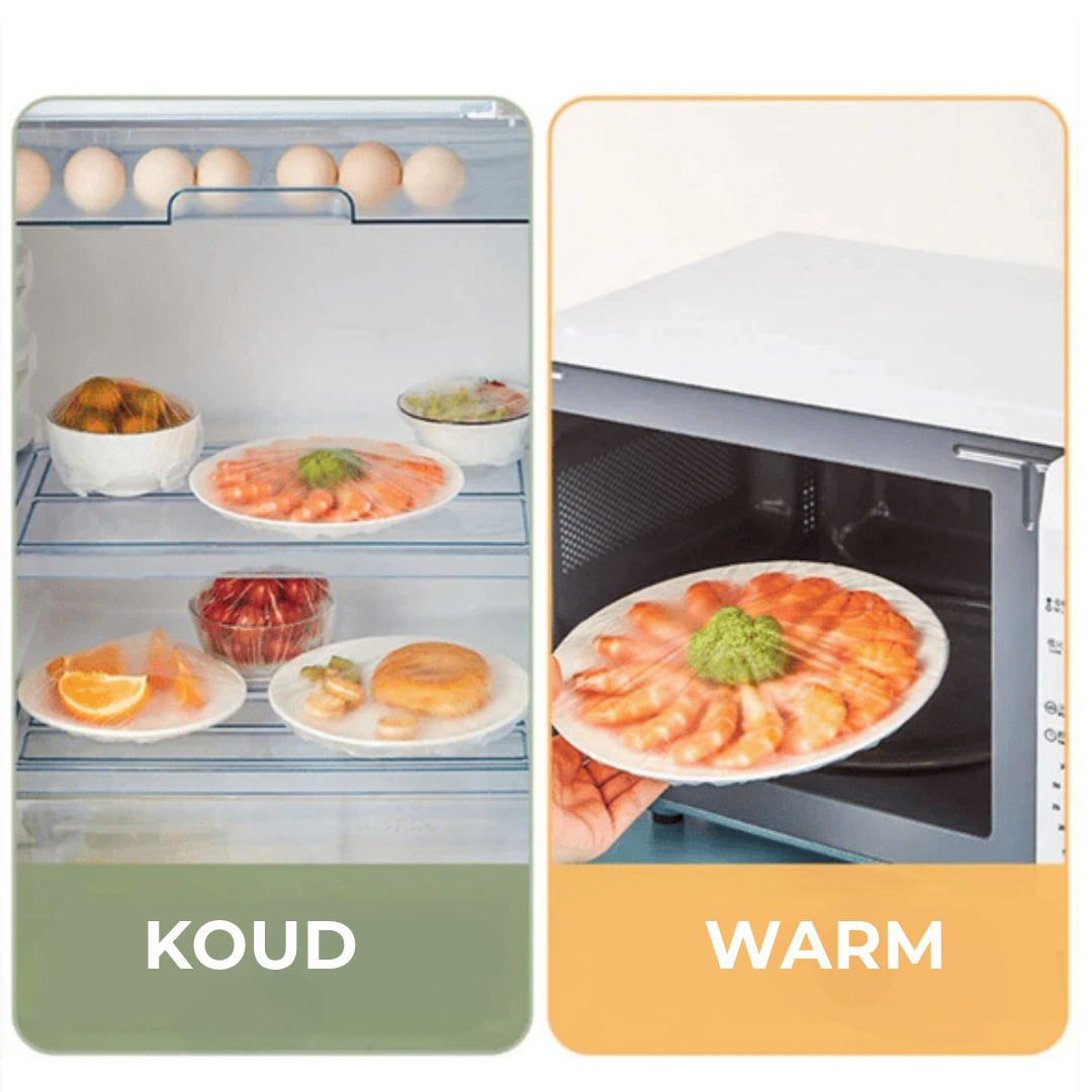 Stel je voor: geen gedoe meer met onhandige plasticfolie die niet blijft plakken of voedsel dat uitdroogt in de koelkast. Met deze herbruikbare vershoudhoezen dek je je schalen en borden in seconden af – zonder afval, zonder stress.