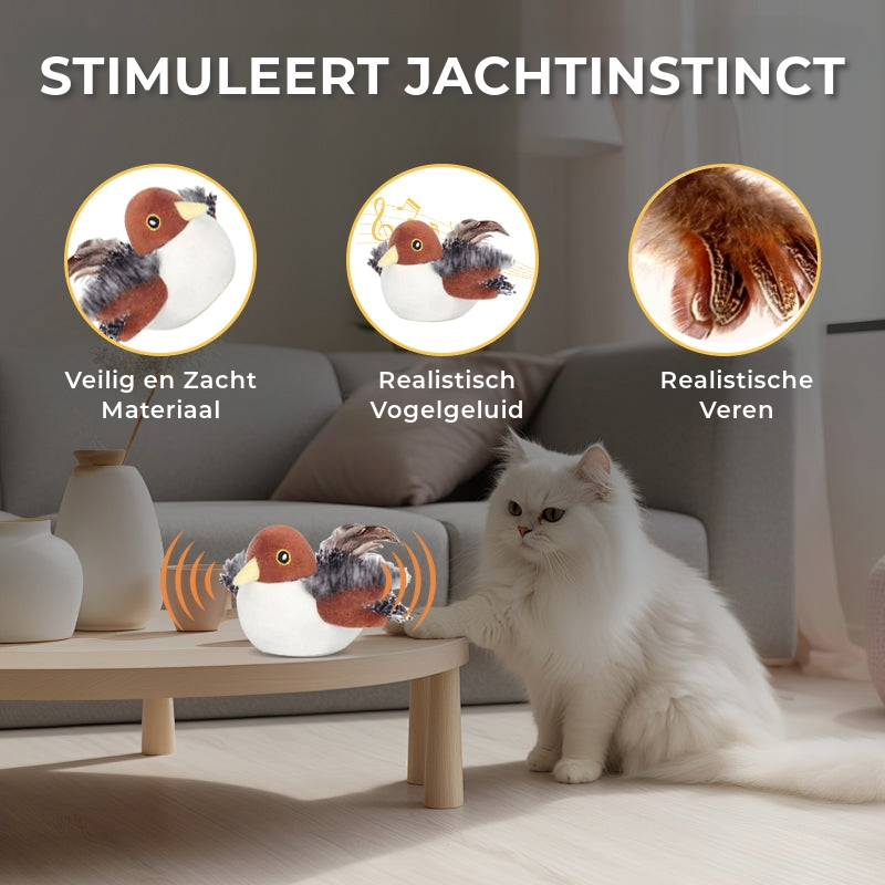 Met realistische vogeltjesgeluiden en levensechte fladderende vleugels prikkelt dit speeltje het natuurlijke jachtinstinct van je kat. Perfect voor eindeloos speelplezier en mentale stimulatie elke kat.