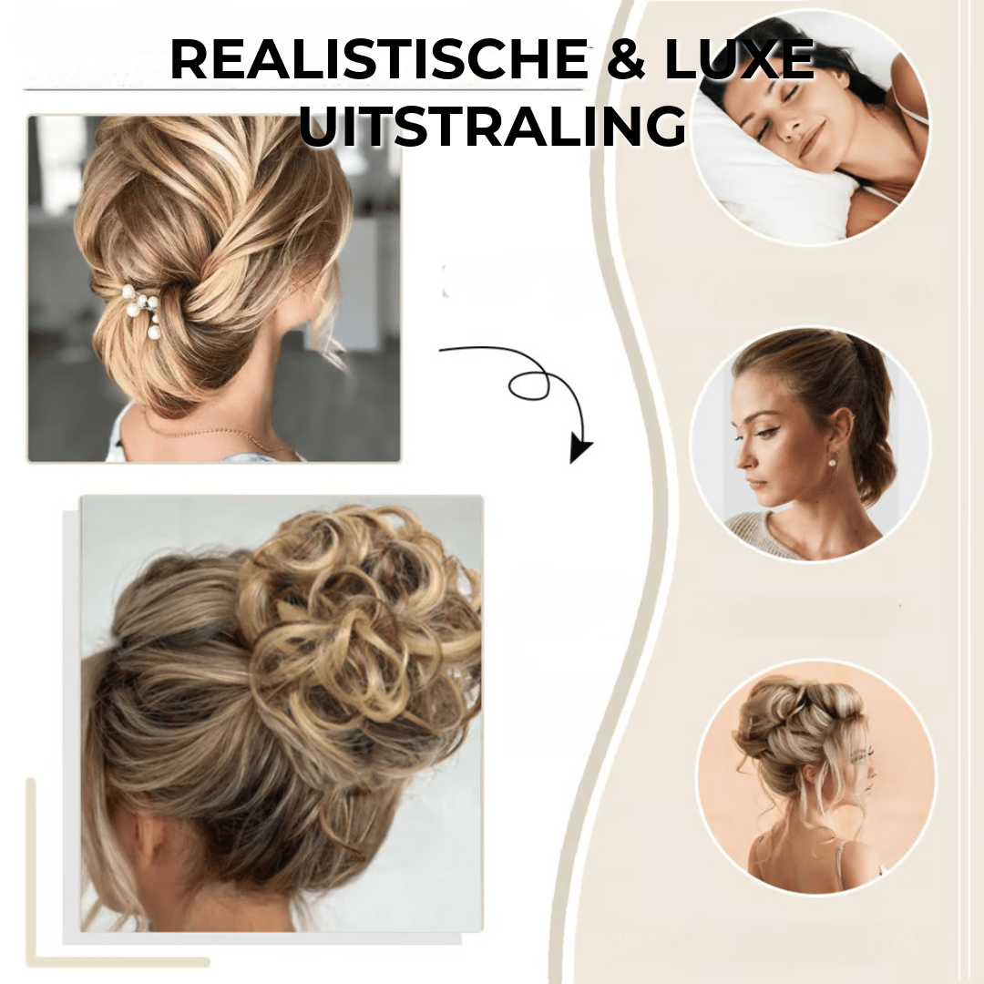 Creëer een volle, stijlvolle bun zonder gedoe – perfect voor elke gelegenheid! Geen dure kappersafspraken of lange stylingtijd meer nodig. Met minimale inspanning geniet je van een perfect gevormde knot die de hele dag blijft zitten.