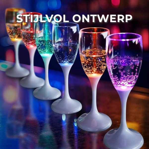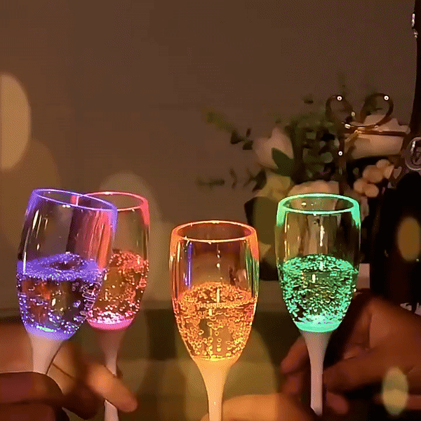 Maak elke toast onvergetelijk met een champagneglas dat je drankje verlicht in levendige kleuren, wat een betoverende gloed aan je feest geeft.