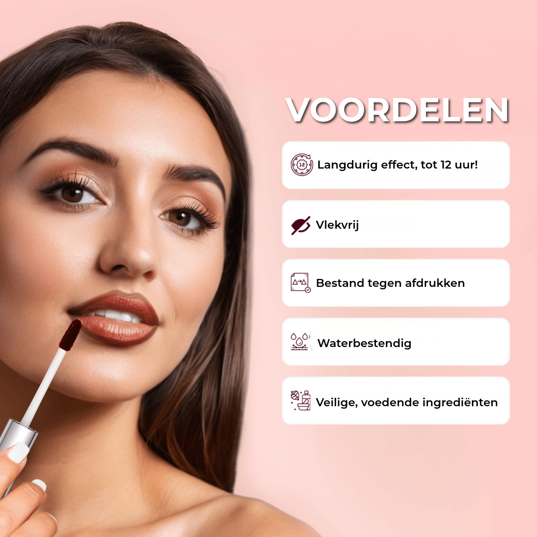 Geen eindeloze touch-ups meer! Dankzij de long-lasting formule blijft de kleur tot wel 12 uur perfect zitten – bestand tegen eten, drinken en kussen. Altijd zelfverzekerd, van ’s ochtends vroeg tot ’s avonds laat.