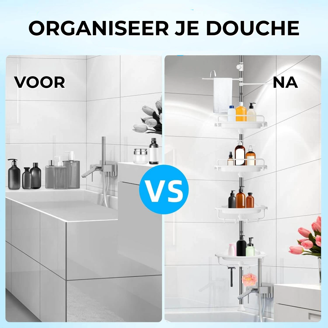 Het strakke en minimalistische design voegt een luxe uitstraling toe aan je badkamer, terwijl je al je verzorgingsproducten netjes georganiseerd houdt. Geen rommel meer in de douche, alles binnen handbereik voor een ontspannen douche-ervaring.