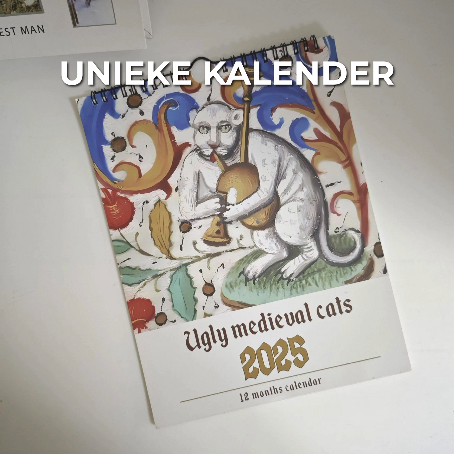 Laat deze unieke wandkalender met middeleeuwse kat schilderijen het gesprek van het jaar worden!