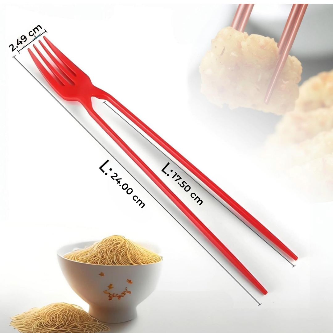 Met deze slimme combinatie van vork en eetstokjes heb je altijd het juiste bestekbij de hand – of je nu geniet van Aziatische gerechten of je favoriete pasta. Functioneel, stijlvol en ontworpen voor comfort, maakt dit 2-in-1 bestek elke maaltijd eenvoudiger én leuker.