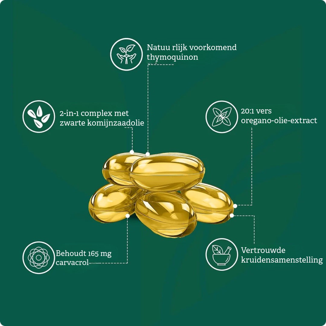 Veel behandelingen blijven oppervlakkig, maar de combinatie van oregano-olie en zwarte komijnzaadolie werkt tot diep in het spijsverteringskanaal. Dit helpt om toxines af te voeren, ontstekingen te verminderen en het lichaam te ondersteunen in zijn eigen herstelvermogen. Een veilige, natuurlijke oplossing voor langdurige klachten.