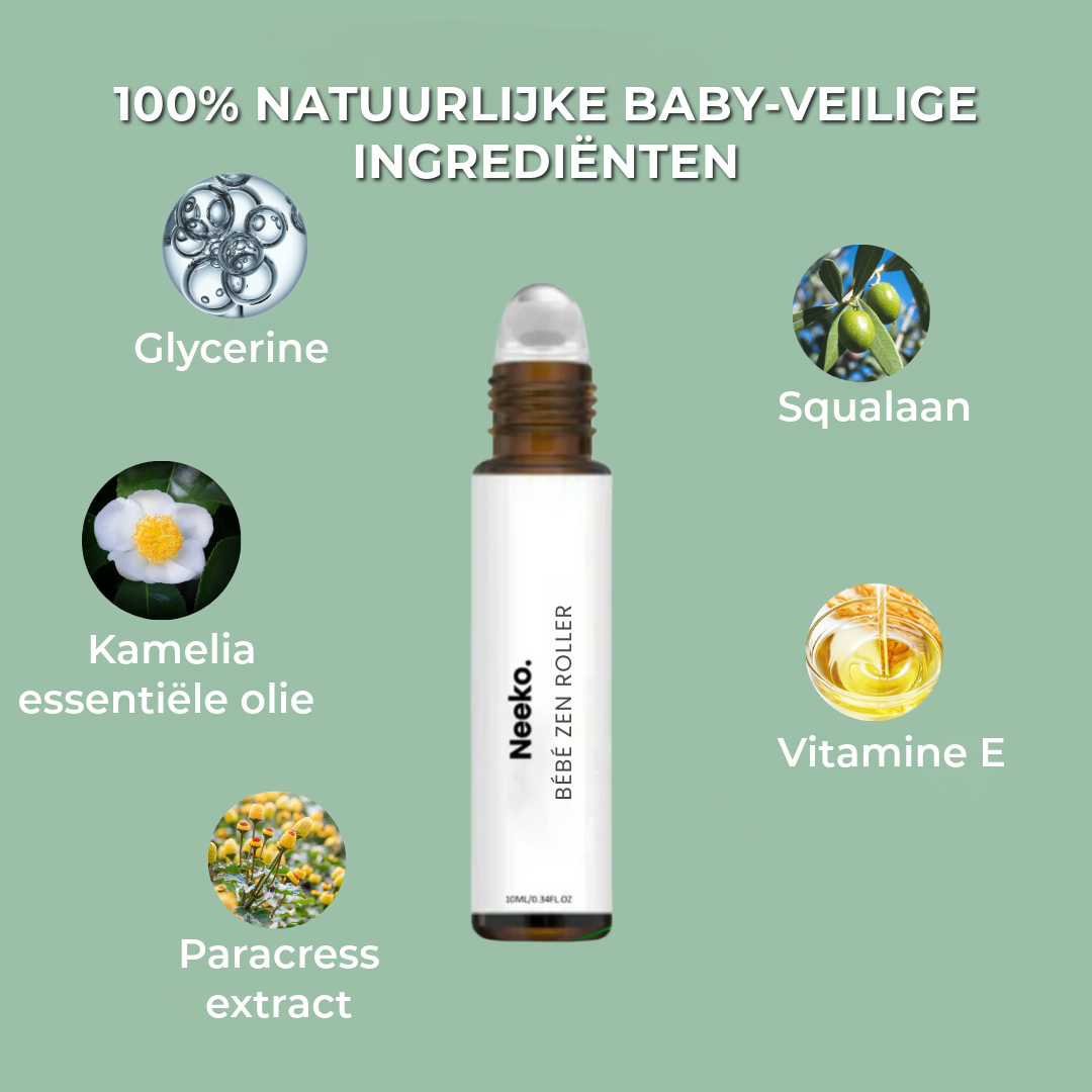 De Pijnverlichtende Roller is met liefde en zorg samengesteld uit een mengsel van natuurlijke oliën en rustgevende extracten zoals Camelia en Paracress, waardoor het volledig veilig is voor de gevoelige huid van je baby. Vrij van chemicaliën, het is de puurste keuze voor je kleintje.