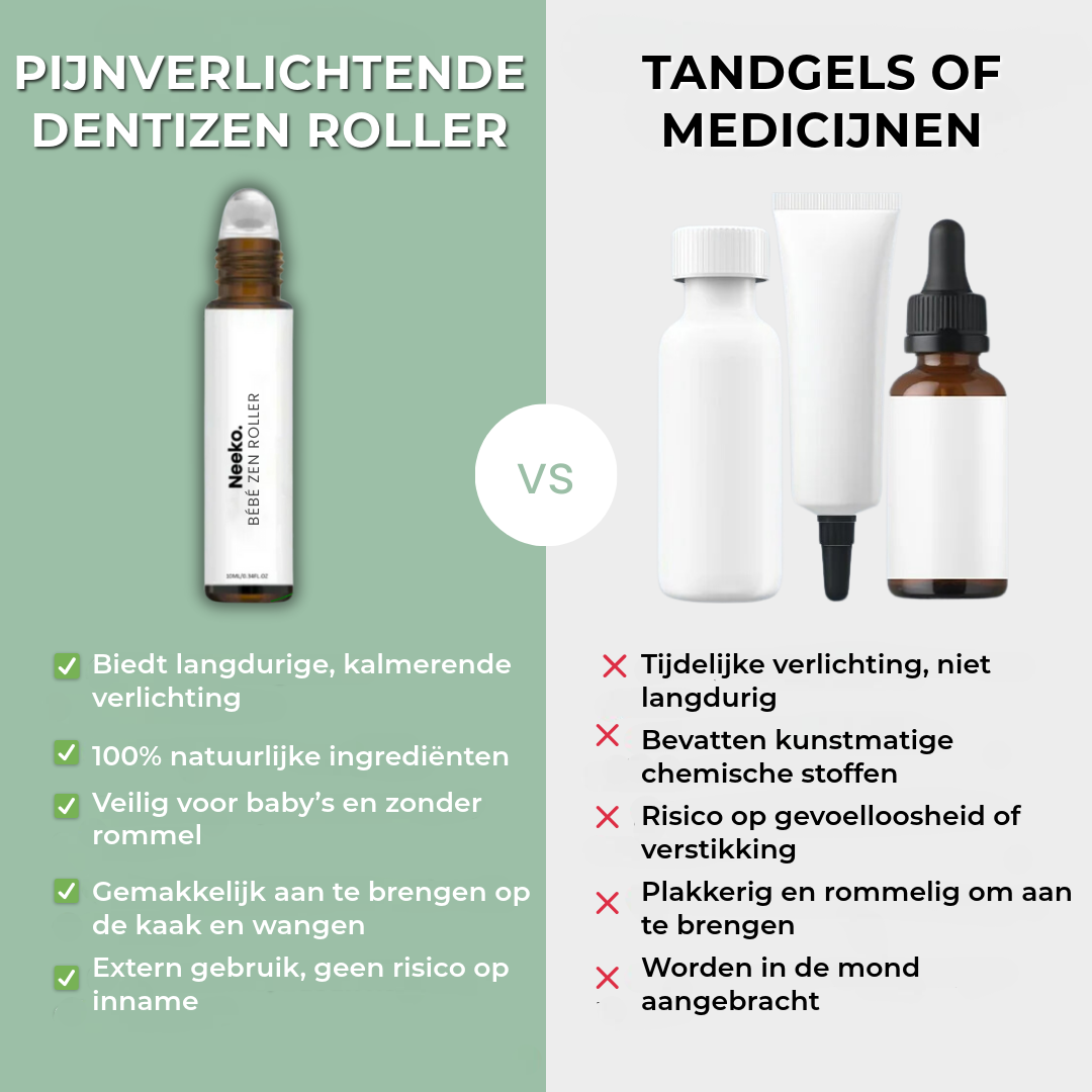 Zeg vaarwel tegenhulpeloosheid en zorgen tijdens het doorkomen van de tandjes. De Pijnverlichtende Roller is een onmisbare tool voor ouders, die onmiddellijke verlichting biedt en gemoedsrust geeft dat het comfort van je baby in goede handen is.