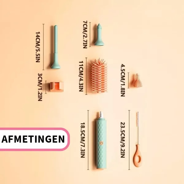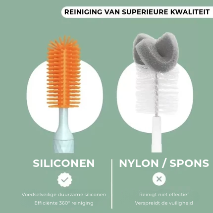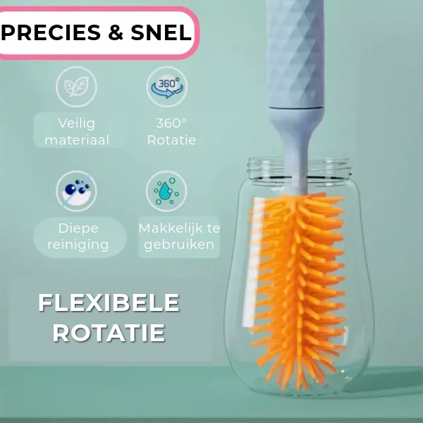 De krachtige 360-graden reinigingsactie verwijdert voedingsresten, drankresidu, bacteriën en hardnekkige vlekken uit elke hoek, zodat flesjes en drinkbussen brandschoon en hygiënisch blijven.