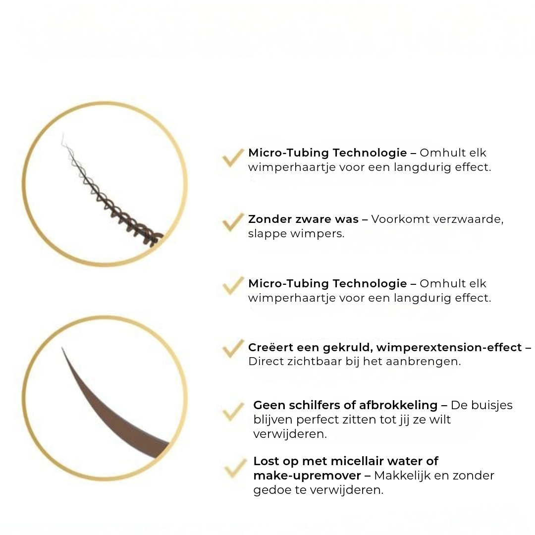 De unieke tubing-formule omhult elke wimper met een flexibel buisje, waardoor je wimpers de hele dag perfect blijven zonder uit te lopen of te vlekken. Geen panda-ogen meer!