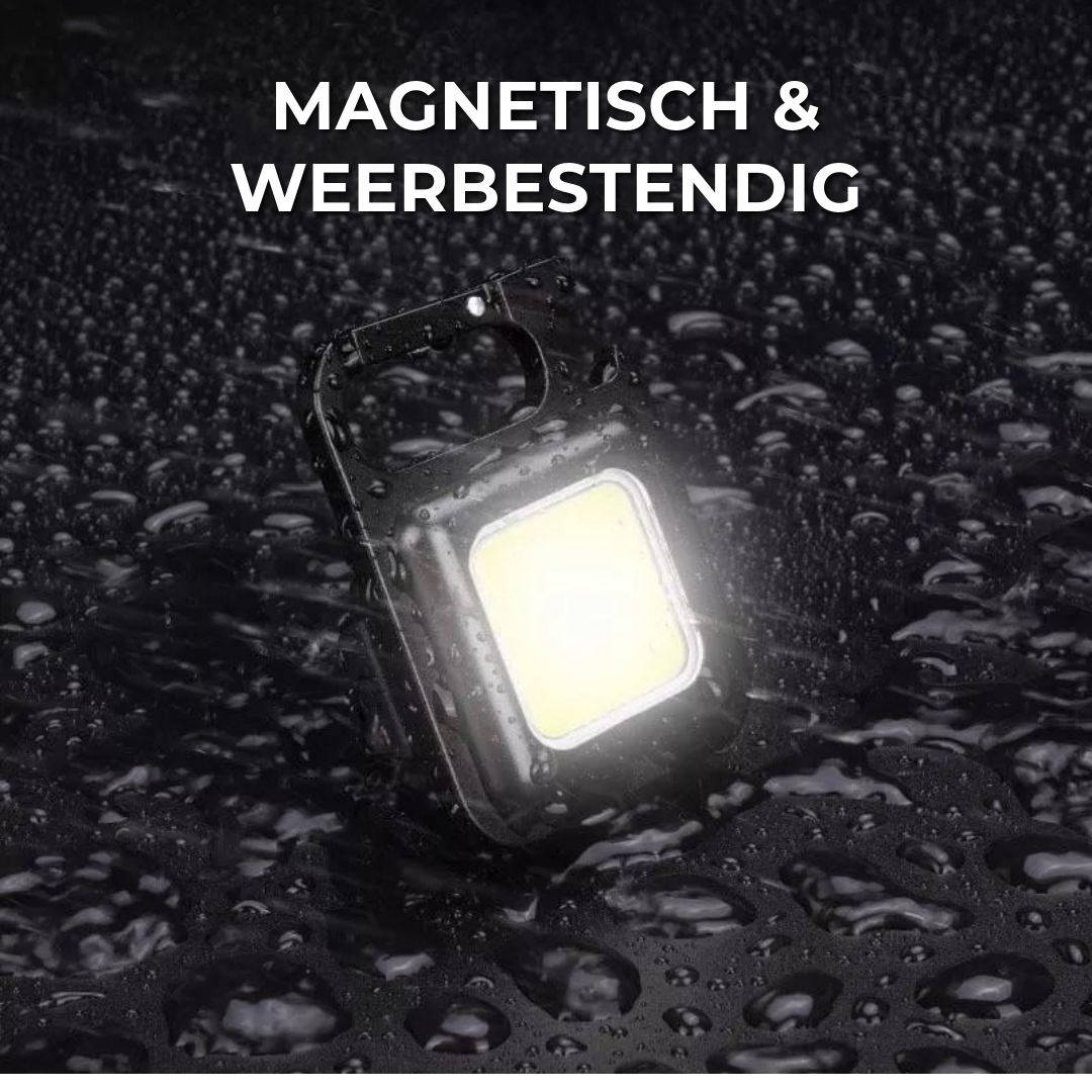 Dankzij de ingebouwde sterke magneet kun je de lamp vastzetten op metalen oppervlakken, zoals je auto of gereedschap, zodat je beide handen vrij hebt. Ideaal voor autoreparaties of klussen in het donker. Regen? Geen probleem! De waterbestendige behuizing zorgt voor betrouwbare prestaties.