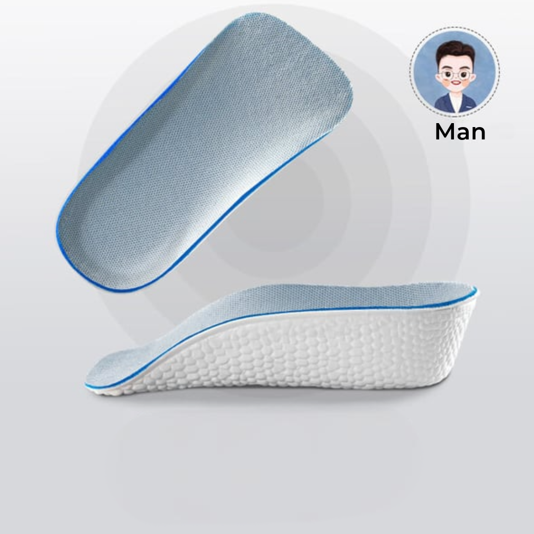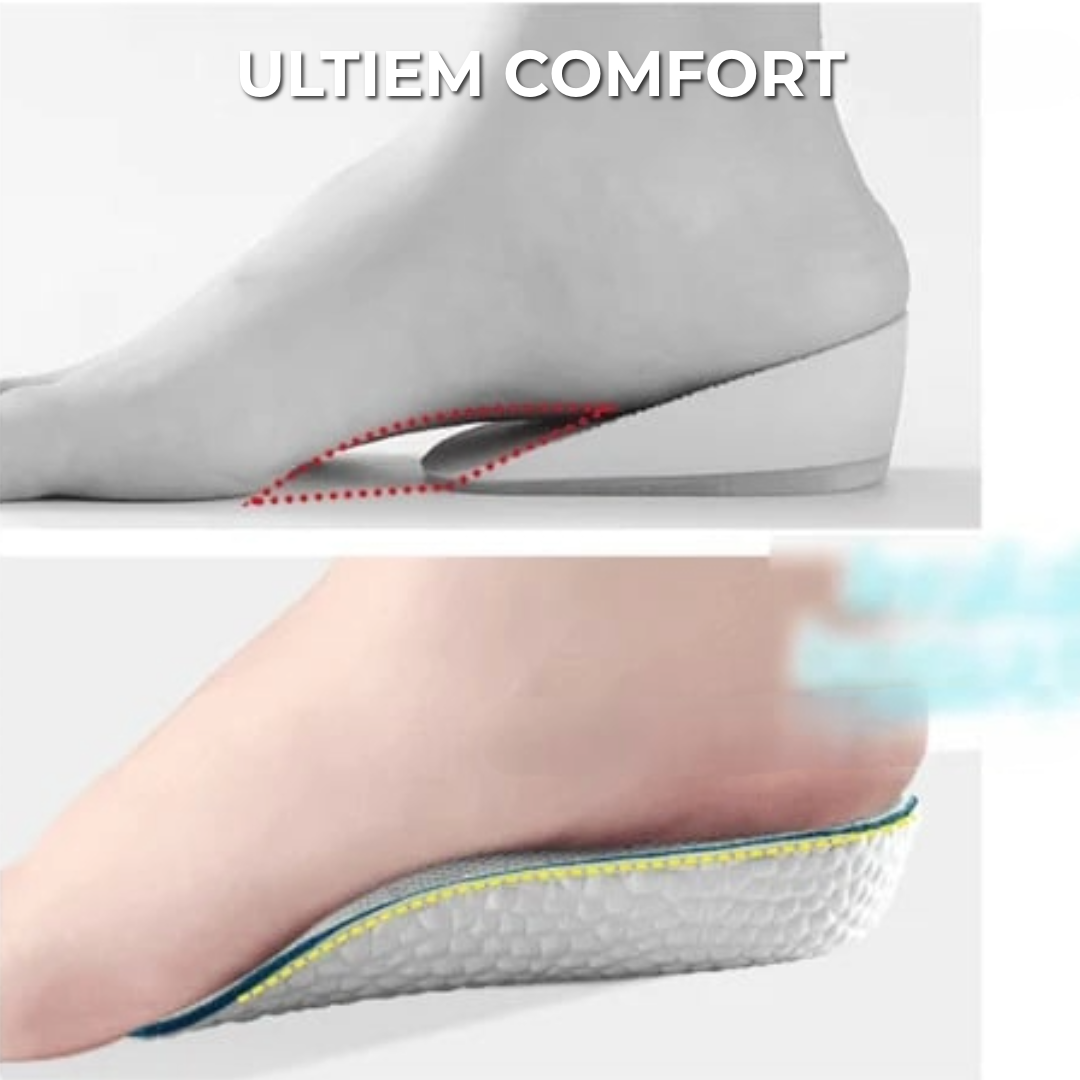 Deze inlegzolen verhogen niet alleen je lengte, maar bieden ook optimaal comfort en ondersteuning. Dankzij volledige voetgewelfondersteuning verbeteren ze je houding en ontlasten ze je rug en heupen. Het zachte, schokabsorberende materiaal vermindert ook de druk op je voeten.