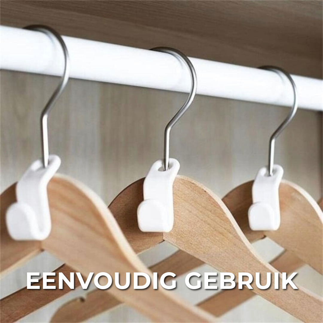 Dankzij deze slimme hanger connector haken kun je kleding hangers aan elkaar koppelen en direct meer ruimte creëren in je kast. Perfect voor kleine kasten of slimme organisatie!