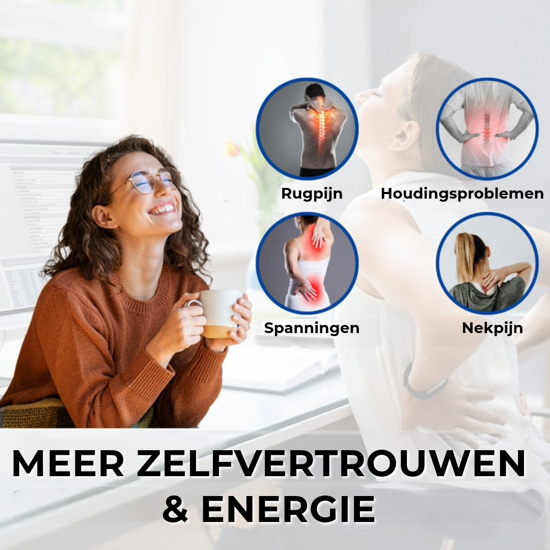 Een rechte houding zorgt niet alleen voor minder pijn, maar laat je zelfverzekerder, krachtiger en energieker voelen. Sta sterk en vol zelfvertrouwen in het leven en zeg voorgoed vaarwel tegen een ingezakte houding!
