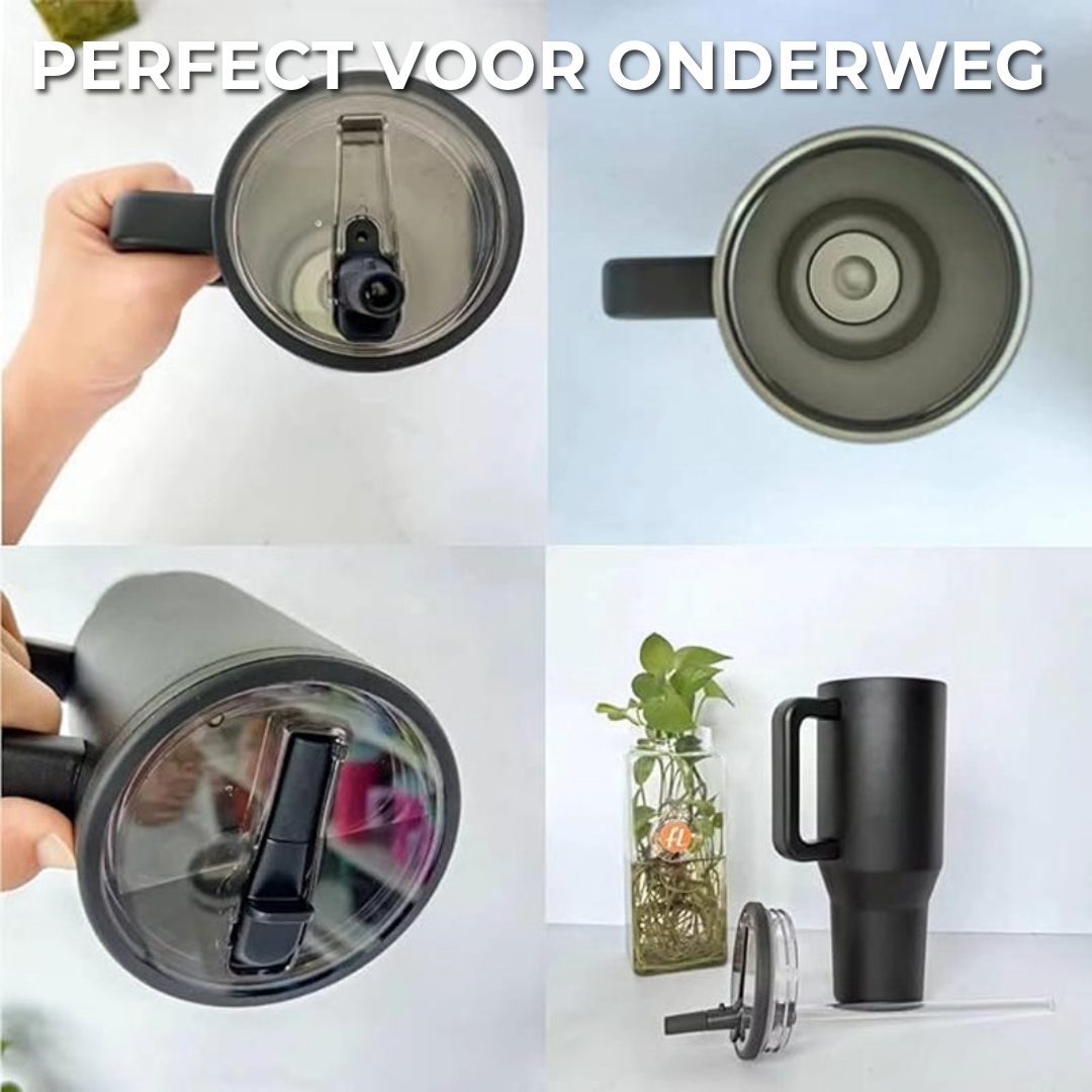 Gemaakt van hoogwaardige, voedselveilige materialen die vrij zijn van schadelijke stoffen. Dit zorgt ervoor dat je drankje fris en veilig blijft, terwijl de deksel duurzaam en gemakkelijk schoon te maken is. Bouwt op kwaliteit die lang meegaat!