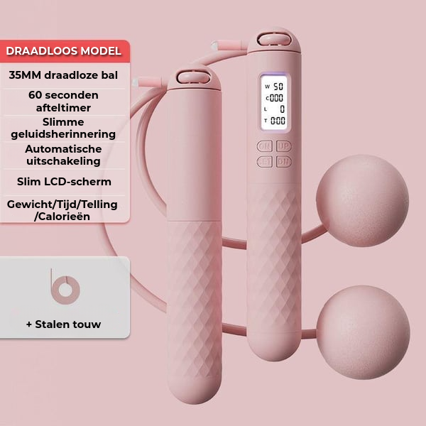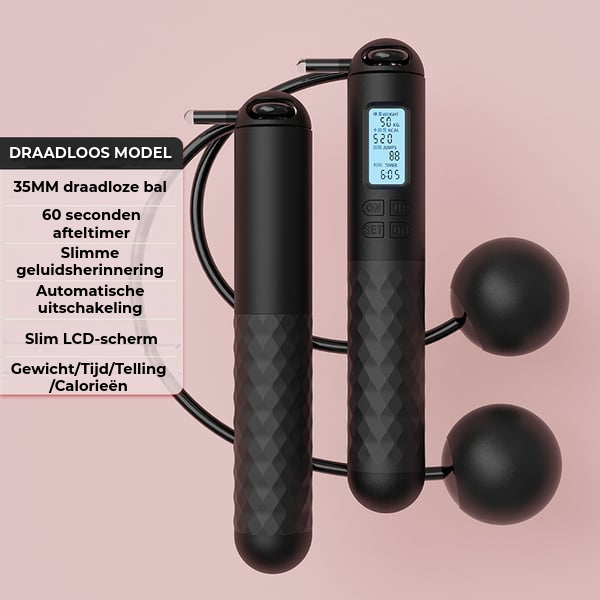 Dit springtouw combineert flexibiliteit met gemak! Kies tussen het traditionele springtouw voor intensieve cardio óf ga voor de draadloze optie zonder gedoe met knopen of ruimtebeperkingen.