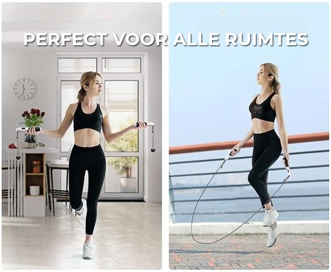 Of je nu in een kleine kamer, woonkamer of buiten sport: dit compacte springtouw past overal. Geen excuses meer—train altijd en overal, ongeacht je fitnessniveau.