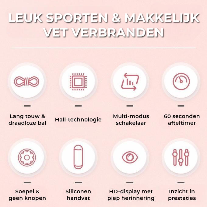 Blijf gemotiveerd! Het ingebouwde HD LED-display houdt nauwkeurig je tijd, gewicht, aantal sprongen en verbrande calorieën bij. Zet je fitnessdoelen en zie direct je voortgang.